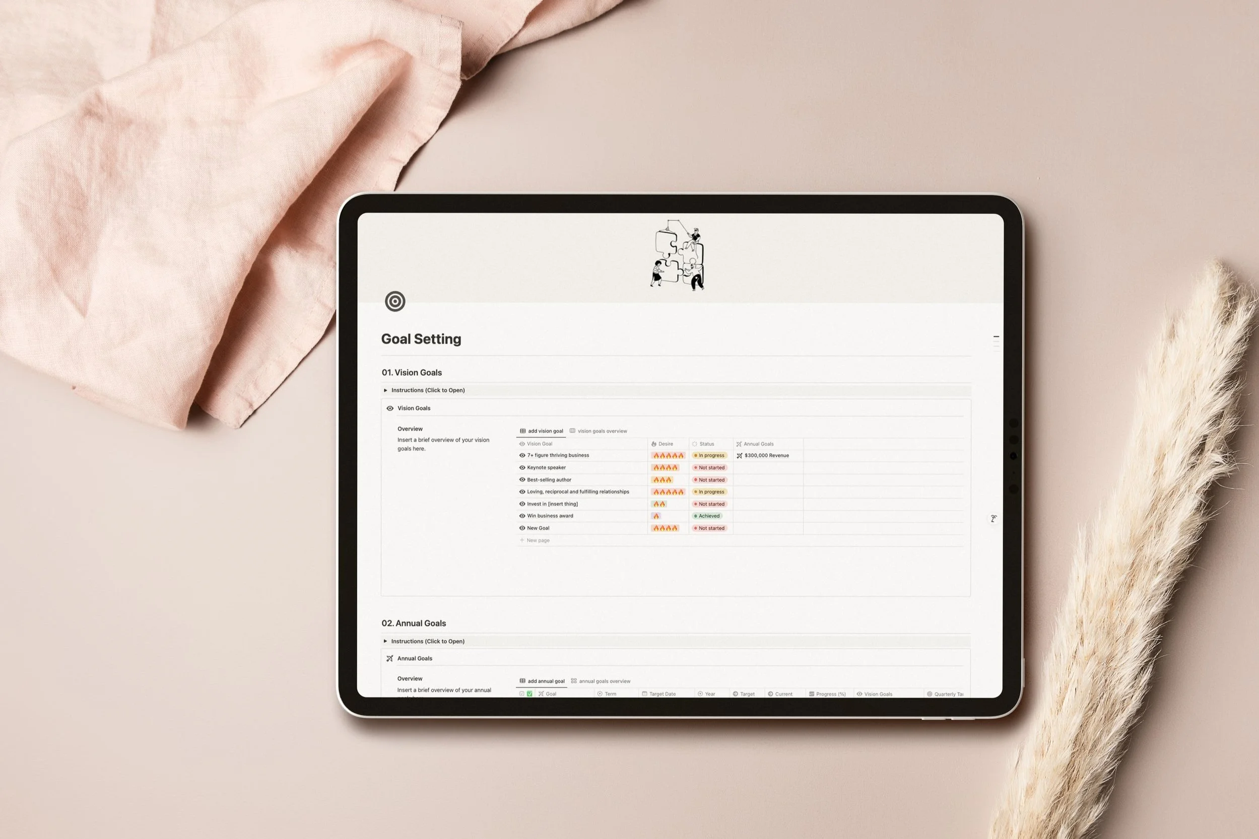 Using the Notion template (link available below), each vision goal becomes a foundational cornerstone.